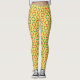 Damas Leggings em um padrão de círculos, cada círculo composto por pontos vermelhos e verdes alternados, numa cor base amarela.