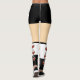 Um divertimento e um gráfico cómico dos pés das senhoras que vestem os shorts apropriados apertados pretos curtos e as meias longas que têm corações vermelhos afiaram com os diamantes do diamante do falso ajustados nas listras horizontais brancas e pretas.
