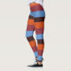 Azul, laranja, castanho, listras vermelhas nas pernas.