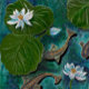 Peixe feliz nadando por todas as suas pernas mais um lótus no seu rabo.