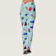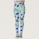 Leggings com elementos de recordações de pisca: skates em linha, skates quádruplos, nachos, pulseiras de gelatina, pessoas de futebol, bolas de disco, bebidas com gelo esmagado, e um chão de patinação cheio de manchas de luz e um chip em falta.