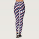 Leggings listradas, brancas e vermelhas.