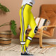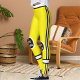 These Personalized Yellow Black White Pet Mama Yoga Pants combine bold design with custom flair. Featuring white “PET MAMA” text inside black circle emblems on both knees, “WE FUSE HOME” curved on the back, and a sleek palm graphic symbolizing love between pets and moms, it is stylish and meaningful. With black-and-white side stripes and calf accents, it's perfect for workouts or daily wear. Add your name or short text to make it truly yours—customize your comfort and express your bond today!