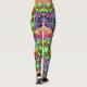 Design psicodélico em cores brilhantes e felizes, com duas estrelas se juntando no fundo. Uma explosão de matizes felizes e formas geométricas para hippies mais velhos e mais jovens. Também para aqueles cujas cores e vibrações emocionais são fortes e bonitas como as formas neste entalhe, funk par de leggings de design assimétricas e personalizadas.