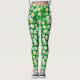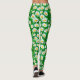 Leggings em um padrão aquoso de margaridas brancas com centros ouros amarelos, sobre fundo verde-pastoso