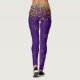 Leggings espandex elegantes feitas em roxo, com gráficos de brilho de ouro e estrelas douradas. Personalize para adicionar texto a este par de leggings de estilos que seguramente o prendem, todos os locais certos.