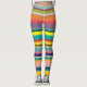 Estas leggings têm um design de faixas horizontais em tons de azul, verde, marrom, roxo, vermelho, amarelo, laranja e rosa.