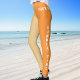 Summer Time Beach Time Sporty Chamado Design. Este design único tem duas cores diferentes, marrom-claro e laranja. É muito simples personalizar, basta adicionar seu nome. Será impressa em ambos os lados das leggings. O texto da perna esquerda é "TEMPO DE VERÃO" e o texto da perna direita é "TEMPO DE BEACH". Você sempre pode mudar para seu próprio texto. Peça o seu hoje! É realmente verão e diversão, perfeito para procurar a moda no verão!