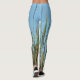 Leggings naturalmente lindos azul céu com representação artística de taboas em verde e marrom criando um design de leggings chic natural e terroso. Esta imagem é uma fotografia original da natureza manipulada digitalmente por JLW_PHOTOGRAPHY.