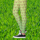 Pernas de tênis divertidas com um padrão repetitivo criado com raquetas de tênis cruzadas, de formato vermelho, e bolas de tênis amarelas. O fundo tem um gradiente de cor verde se mesclando em amarelo.