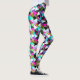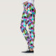 Estas leggings impressas têm um padrão triangular no estilo Memphis nas cores néon brilhantes. Este design de estilo da Flórida tem muitos padrões em forma geométrica dentro dos triângulos junto com as folhas de palma de Miami espalhadas pelo padrão. Você pode fazer o padrão nas pernas maior ou menor. Estas leggings fazem um presente divertido ou se tratam presente para qualquer um que ama o estilo Memphis dos anos 80.
