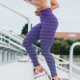 Legging Trippy de faixas de gradiente roxa horizontal lega