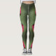 Legging Verde Floral Elegante do Rosa vermelha Clássico