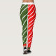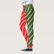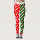 Vermelho e verde divertidos com leggings de cana doce de tira branca. Divirta-se comemorando as festas de Natal com estas pernas festivas de Natal com uma perna vermelha e uma perna verde. A listra branca da cana adiciona a diversão!