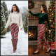 Legging Vibrant Diagonal Christmas Plaid Red Green