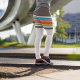 Padrões de faixa retrorreflectores de fundo de vintage. O padrão do estilo primavera de moda do arco-íris no verão faz seu visto de exercícios parecer mais impressionante. Experimente estas leggings e deixe seus comentários.