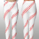 Um par único de leggings para fãs de beisebol! Pontos vermelhos grandes e altamente detalhados (costuras) rodando diagonalmente de cima para baixo, criando um padrão sem soldadura ocular. Estes parecem excelentes como parte de um conjunto de jogos para mães de baseball, namoradas e outros ventiladores!