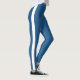 Lindas leggings azuis com listras brancas ao longo dos lados.