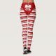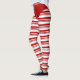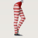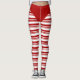 Festiva, doce, fita branca de cana e leggings vermelhas.
