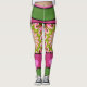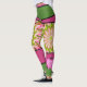 Leggings de reconhecimento do cancer da mama em cores rosas e verdes. Coração e fita cor-de-rosa agridem os fundos.