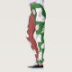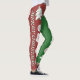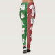 Essas leggings podem ser personalizadas em qualquer cor. A amostra está em vermelho, com um design com árvores de natal, ornamentos, meias e presentes. Uma perna tem o texto "Feliz Natal". Mensagem MineByDesign para obter ajuda com este ou outros designs!