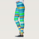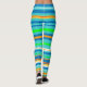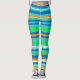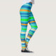 Estas leggings bonitinhas são decoradas com um padrão vivo de abstrato de faixas verdes, douradas, laranja, azul, turquesa e brancas.