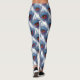 Leggings lindas, de cor azul e vermelha, com penas pavão em branco.