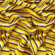 Arranhão de fechamento de um tecido com padrão listrado em amarelo, preto e branco, o tecido é cortado e dobrado, criando uma série de curvas e sombras que agregam profundidade e textura à imagem, as listras são de diversas larguras, sendo as listras amarelas mais proeminentes, as listras pretas e brancas mais finas e fornecem contraste, o tecido parece leve e levemente er, permitindo que a luz passe e crie variações sutis na intensidade das cores, o efeito geral é visualmente dinâmico e engajador, com a interação de linhas e sombras criando senso de movimento e fluidez.