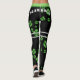 Pernas pretas com faixa verde de cintura e molhos desenhados pela mão verde também conhecidos como quatro capas de folha e texto de bloco branco no verso lendo SLAM ROCK.