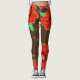 Pernas florais vermelhas floradas com leggings de senhoras com fundo castanho de chocolate que podem ser personalizadas a qualquer cor.