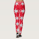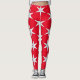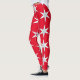 Leggings com imagem de estrelas brancas sobre fundo vermelho.