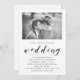 Este convite de casamento simples e elegante mostra sua foto pessoal com a tipografia negra moderna em um fundo branco.