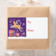 Etiquetas de presente de Natal bonitas, ilustradas com uma ilustração de uma rena a dançar sobre presentes numa noite de Natal nevada. Personalize com seus próprios nomes. Ilustração e design por Sarah Trett.