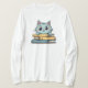 Adorável e esquisito! Essa design apresenta um gatinho curioso com livros, perfeito para amantes de gatos que apreciam uma vibração acolhedora.
