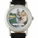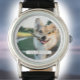 Lembre-se de um animal de estimação amado por ter sua foto e seu nome em um relógio de pulso na moda. Altere a foto para mostrar seu próprio cachorro ou gato. Altere o texto para o nome do seu animal de estimação.