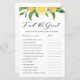 Encontre os convidados. Junte-se e converse com os convidados para encontrar a resposta para as perguntas. | Adicione este cartão de jogo de chá divertido e divertido ao seu evento. Este arquivo personalizável apresenta ilustrações de cor d'água de limão e laranjas com acentos verdes. Personalize adicionando suas perguntas. Este cartão de chá cítrico é perfeito para chás de fraldas de verão e chás de panela de verão.