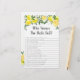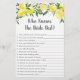 Esses adoráveis que conhecem as melhores cartas da noiva são uma atividade de Chá de panela divertida. Simplesmente passe-os durante o chá onde os convidados se divertirão a responder a perguntas sobre a Noiva! A pessoa com as vitórias mais corretas! O design apresenta limões aquosos brilhantes com espadilha verde e folha de ouro suja.