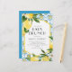O tema Lemon baby brunch convite com ilustrações aquáticas de limões, flores de limão e padrão de azulejo mediterrânico. Personalize adicionando nomes, data, hora e outros detalhes. Este convite para o café com limão é perfeito para chás de fraldas temáticos do verão e do Mediterrâneo.