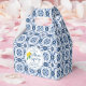 Uma bonito caixa de favor de chá de panela de limão decorada com limões e azulejo azul italiano, com as palavras, ela encontrou seu principal aperto. Perfeito para seus convidados de chá de panela de limão azul italiano. Projetado para você pelo Blackberry Boulevard.