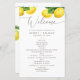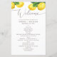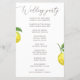 Celebre seu dia especial com este cartão do programa de casamento de cor d'água de limão duplo. A frente apresenta os detalhes da sua cerimônia, enquanto a parte de trás destaca sua festa de casamento, toda enquadrada com limões pintados com mão alegre e folhas verdes exuberantes. Projetado em amarelo fresco e aquarela verde, ele traz um toque brilhante e alegre à sua suíte de papelaria. Perfeito para casamentos de verão, comemorações italianas ou mediterrânicas, casamentos de vinhas ou cerimônias de jardim ao ar livre. Este cartão de programa personalizado não só orienta seus hóspedes durante o dia, como também serve como um guardião de sua celebração.