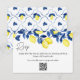 Simplify your wedding planning with this stylish and modern Summer Lemon / Citrus Brunch Wedding RSVP QR Card, designed for couples who want both elegance and convenience. Featuring a seamless watercolor border of bright yellow lemons and soft blue leaves at the top, this design captures the fresh, sunlit feel of today’s most popular summer wedding themes. The reverse side showcases a coordinated seamless pattern of lemons and classic blue tile motifs, giving the card a polished, Mediterranean-inspired look that stands out.