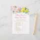 Estes adoráveis "Guess The Price Game Cards" são uma forma excelente de se divertir com o seu Chá de fraldas e é garantido ser um grande sucesso! Simplesmente passe-os durante o Chá de fraldas onde os convidados se divertirão adivinhando quanto cada item de bebê custa. A pessoa com o total mais próximo ganha! A futura mãe pode levar para casa os itens do bebê no final do chá. Você pode até personalizar os itens da lista! O design apresenta limões coloridos de aquarelas, flores cor-de-rosa e confete de folha de ouro falso.
