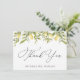 O cartões de agradecimentos apresenta uma borda de limões de aquarela e verde. Personalize com suas informações ou clique em "Clique para personalizar mais" para editar estilos de fonte, tamanho e cores. Também pode ser personalizado no verso com sua própria mensagem digitada ou excluir este espaço para escrever manualmente seu próprio obrigado.