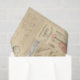 Uma grande imagem do vintage de um corvo ou de um corvo é empoleirada em um globo antigo em um fundo de um cartão francês escrito à mão do vintage com o carimbo postal neste papel bonito e intrigante. Outras imagens incluem um astrolabe antigo e a torre Eiffel e as construções de Paris velha de um cartão do vintage. Um design perfeito para um viajante ou um amante de vintage interessante objeta neste lenço de papel temático francês do decoupage. Uma colagem das partes traseiras dos cartão franceses do vintage, a maioria com endereços escritos à mão, selos velhos do francês e carimbos postais, faz um fundo bonito e interessante. Os artigos de harmonização estão disponíveis em minha loja de Zazzle.