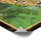 Um rosto colado de Leopardo, virado para a frente. Olhos incríveis murcham na selva. Imagem de fotografia de um grande gato maravilhosa com fundo preto e (faux) dourado marmoreado com bordas douradas. Leopardo, Cheetah, Jaguar adora fotografia. Cada elemento pode ser movido, redimensionado ou excluído.