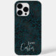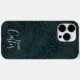 Capas de iphone-leopardo-negro verde elegante com tipografia personalizável em letra de script de tendências e personalizada com seu nome.