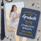 Adicione um toque personalizado legal a uma faculdade ou festa de formatura segundo grau com estes ventiladores de mão azul, branco e amarelo com marinho de fotos personalizadas. Design apresenta uma imagem do formando, da tipografia moderna na moda, da caligrafia de scripts de estilo manuscrito e uma mensagem personalizável lendo "Parabéns para nosso Formando". O texto na parte inferior inclui o ano da aula, o nome da escola e uma linha opcional para o grau, as honras ou a citação de inspiração favorita, obrigados, mãe e pai, ou outras informações. Todo texto é simples de personalizar. Observe que o ouro é impresso a cor, não a folha metálica. Faz uma ideia elegante e personalizada para favores e decorações de festas de formatura e é perfeita para exibir uma foto favorita, como uma imagem de mais velho ou imagem da cerimônia de início. Parabéns ao formando!