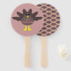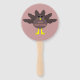 Este fã de mão espetacular mostra um desenho de um peru com grandes olhos pretos, um pequeno bico amarelo e penas de cauda grudadas. Os pés estão voltados em direções opostas, fazer o peru parece pateta. O peru tem um texto cor-de-rosa na barriga que diz "Feliz Ação de Graças" e parece que as penas foram arrancadas para revelar a mensagem.