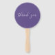 Flores violetas, lavandas e roxas em uma mão pintada por chá de fraldas de coroa favorecem ventiladores projetados para serem rápida e facilmente personalizados de acordo com as especificações do seu evento.
