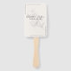 These modern wedding program hand fans feature a minimalist ivory background with your names and date in elegant script, accented by a delicate sketched floral illustration and slim border lines, creating a stylish keepsake that keeps guests cool during your ceremony.